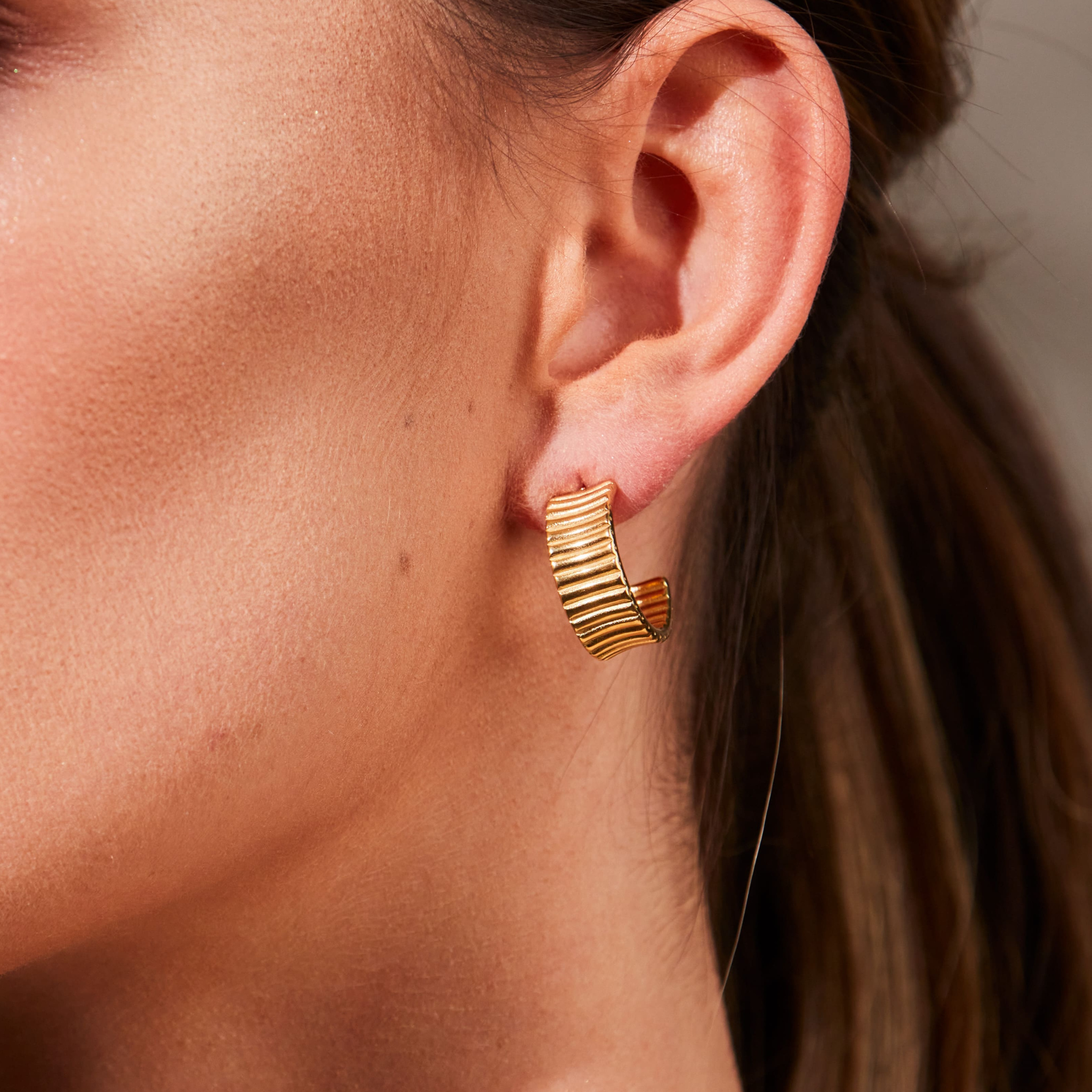 Golden ribbed örhänge