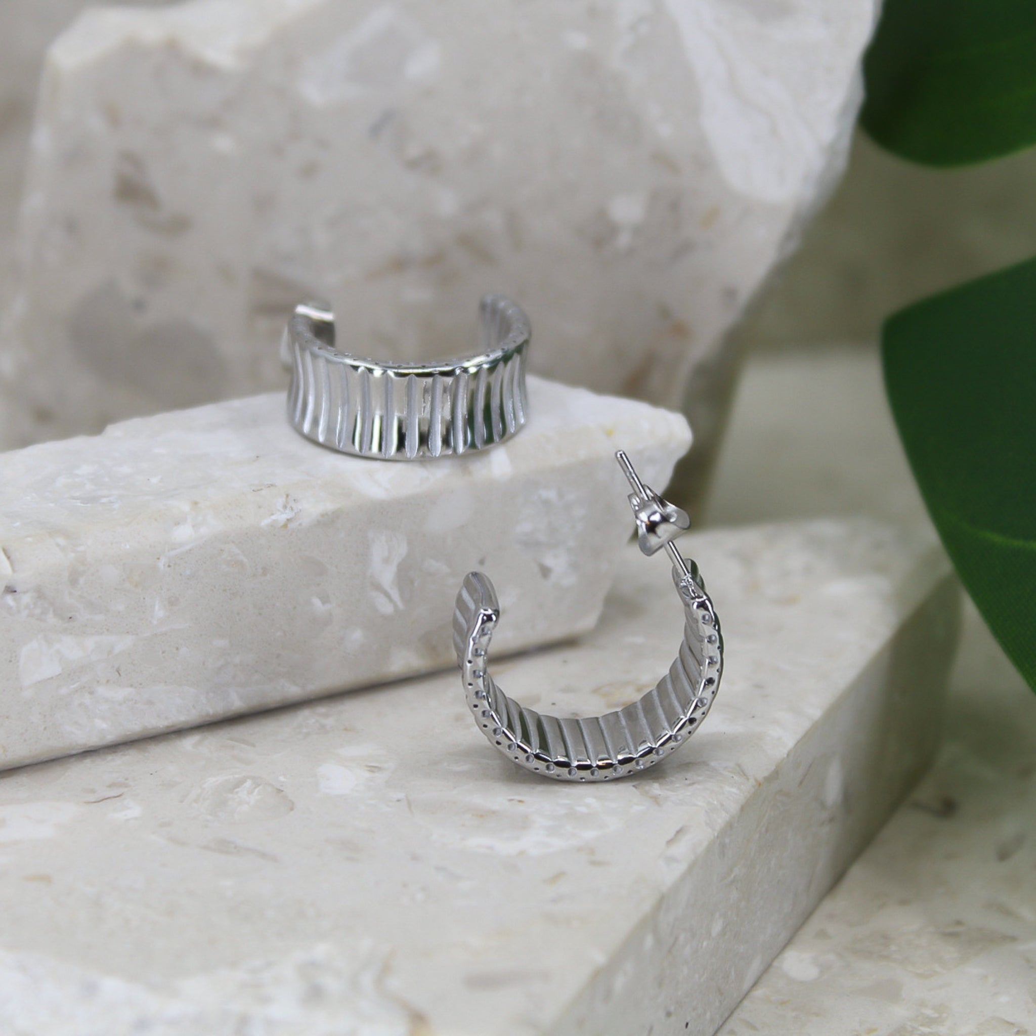 Ribbed steel örhänge